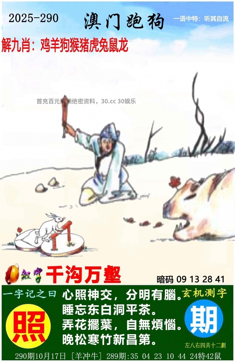289期 | 鼠蛇鸡狗 | 开:鼠42 |